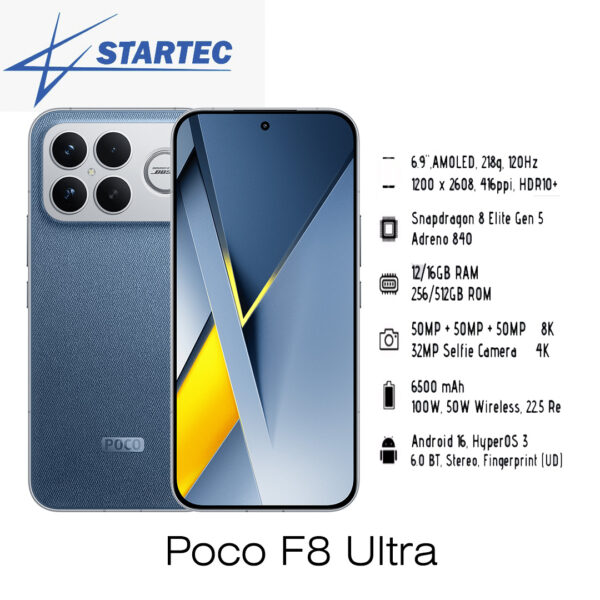 Además, cuenta con un sistema de cámaras de 50 MP que permite capturar fotos y videos con gran detalle en cualquier situación. Su batería de larga duración de 6500 mAh con carga rápida garantiza energía durante todo el día. Con conectividad 5G, diseño moderno y alto rendimiento, el POCO F8 Ultra es la opción perfecta para usuarios que buscan un smartphone potente, elegante y preparado para cualquier desafío